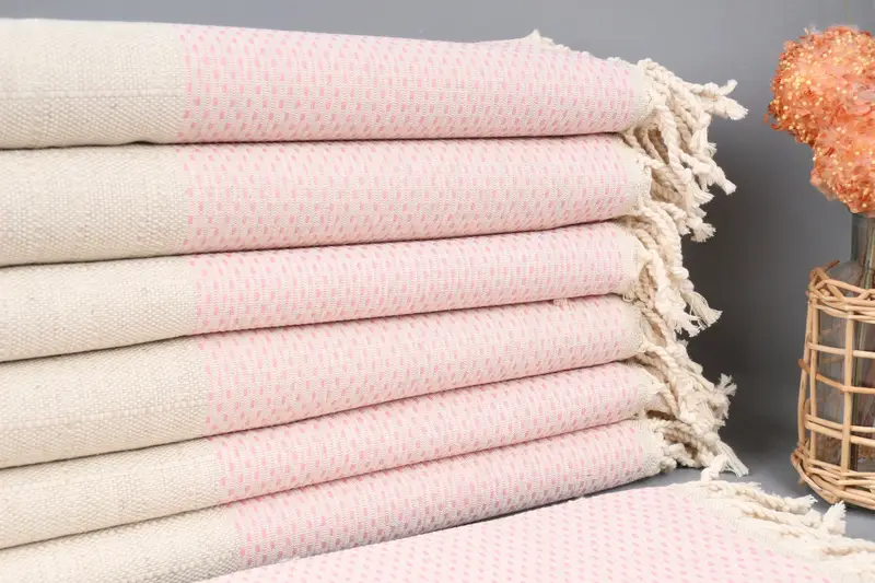 Kişiye Özel Pembe Keten Türk Plaj Havlusu, 40x71 İnç