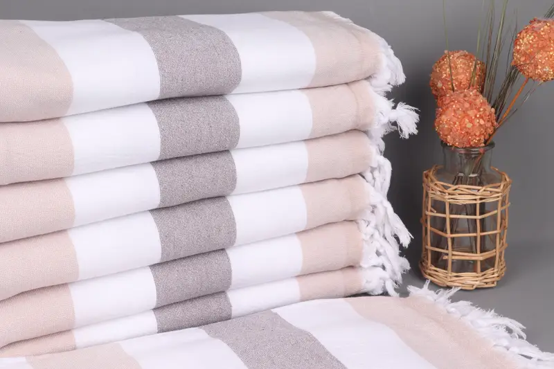 Özel Türk Havlusu Kahverengi-Beyaz-Bej Çizgili Havlu, 36x63 İnç