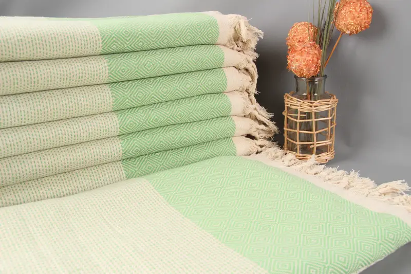 Elma Yeşili Elmas Örtü, Organik Pamuk, 79x103 İnç