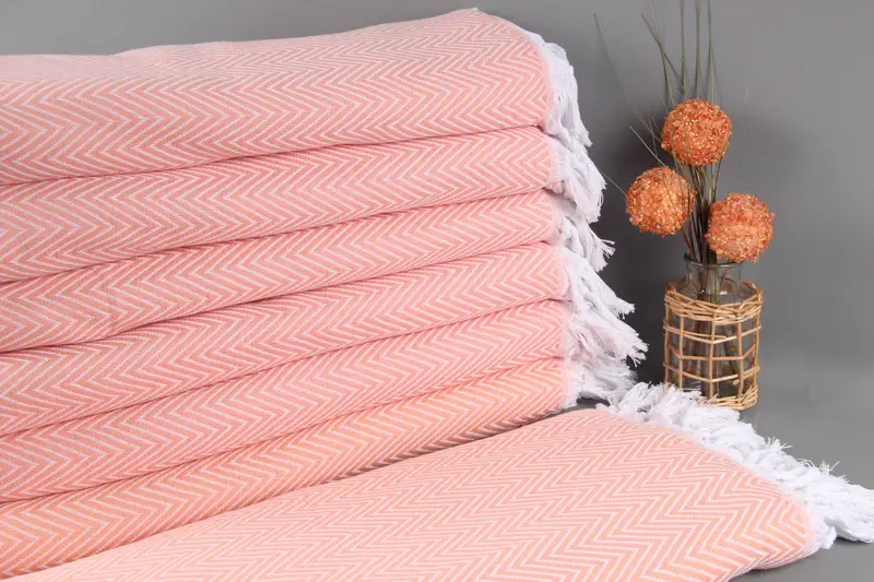 Türk Battaniyesi Mercan Chevron El Yapımı Yatak Örtüsü, 79x95 İnç