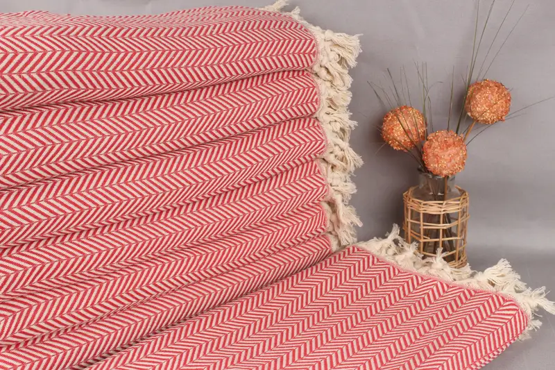 Kanepe Battaniyesi Kırmızı Chevron Koltuk, Organik Pamuk, 75x91 İnç