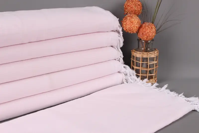 El Dokuma Pembe Çizgili Battaniye, Organik Pamuk, 56x91 İnç