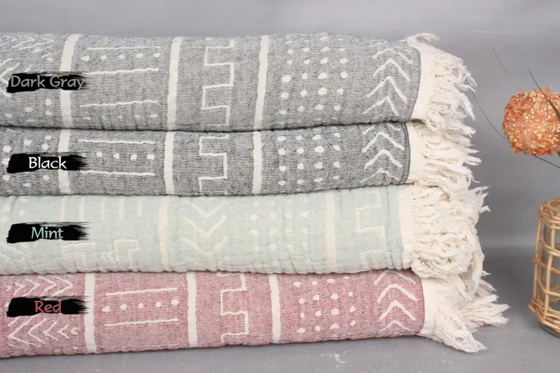 Etnik Tasarım Battaniye El Yapımı Pamuk, Kareli, 79x91 İnç