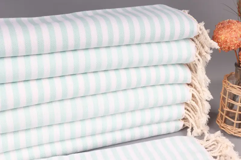 Kişiye Özel Nane Çizgili Türk Plaj Havlusu, 40x76 İnç