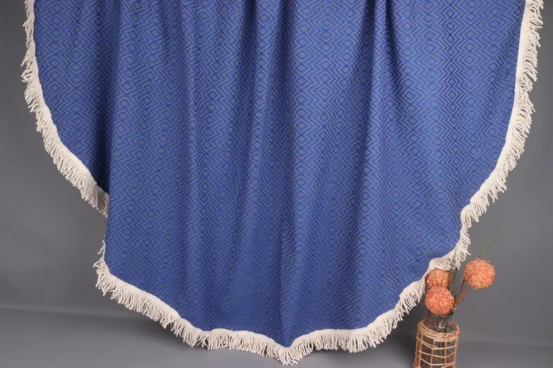 Özel Plaj Havlusu Organik Pamuk Saks Mavi, Yuvarlak Elmas, 63x63 İnç