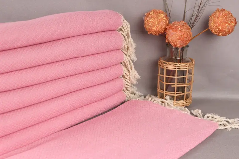 Organik pamuk ipliğinden üretilen havlu, olağanüstü emiciliğiyle karakterize edilen dayanıklılık ve yumuşaklığın bir karışımını sağlar. Boyutsal olarak 38x63 inç veya 95x160 santimetre genişliğinde olup ağırlığı 380 gramdır. El dokuma toleransları, 2 inç veya 5 santimetreye kadar boyut farklılıklarına izin verir.