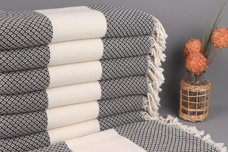 Çeşitli uygulamalar için ideal olan Türk plaj havlumuzda organik pamuk ipliği üstün kalite ve yüksek emicilik sağlar. 36x71 inç (90x180 santimetre) boyutunda ve 1-2,5 cm toleransla karakterize edilen havlunun ağırlığı 380 gramdır. Her bir havlu titizlikle elde dokunmuştur ve her iki tarafta da kullanıma uygundur.