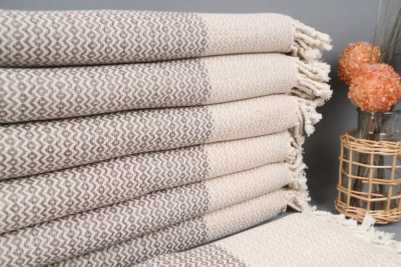 Dayanıklılık ve rahatlık sağlayan Türk plaj havlusu, organik pamuk ipliğinden dokunarak nefes alabilen ve emici bir kumaş elde edilir. 40x71 inç veya 100x180 santimetre ölçülerinde, el dokuması nedeniyle 2 inç (5 santimetre) toleranslı olan bu havlunun ağırlığı 400 gramdır. Her iki tarafı da kullanılabilir ve önceden küçültülmüş olarak gelir. Müşteriler, kendi tercihlerine göre metin veya logo yerleştirme dahil olmak üzere nakış seçenekleriyle havlularını kişiselleştirebiliyor. 35 ABD dolarının üzerindeki siparişler, 3-5 gün içinde dünya çapınd...