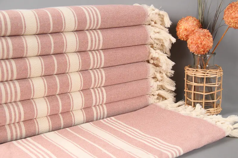 Dokuma teknikleri kişiye özel Türk havlularının karakteristik özelliği olup dayanıklılık ve çok yönlülük sağlar. Organik pamuk ipliğinden üretilen bu havlular maksimum emicilik sağlayacak şekilde tasarlanmış olup, çeşitli kullanımlar için ideal bir üründür. Spesifikasyonlar arasında 2,5 cm tolerans ve 340 gram ağırlık ile 40x71 inç (100x180 cm) boyutları yer almaktadır.