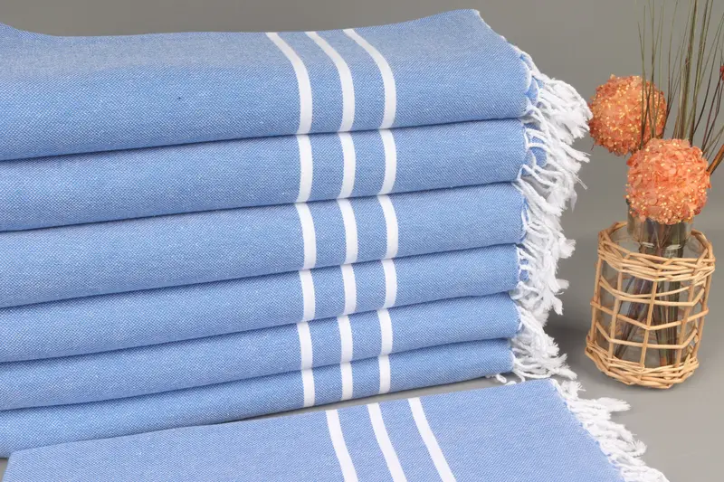 Organik pamuk ipliği bu plaj havlularının karakteristik özelliği olup dayanıklılık ve yumuşaklık sağlar. 40x71 inç (100x180 cm) ölçülerinde ve 2 inç (5 cm) toleransla ağırlığı 430 gramdır. El dokuma, hassas kişiselleştirmeye olanak tanıyarak benzersiz bir ürün sağlar.