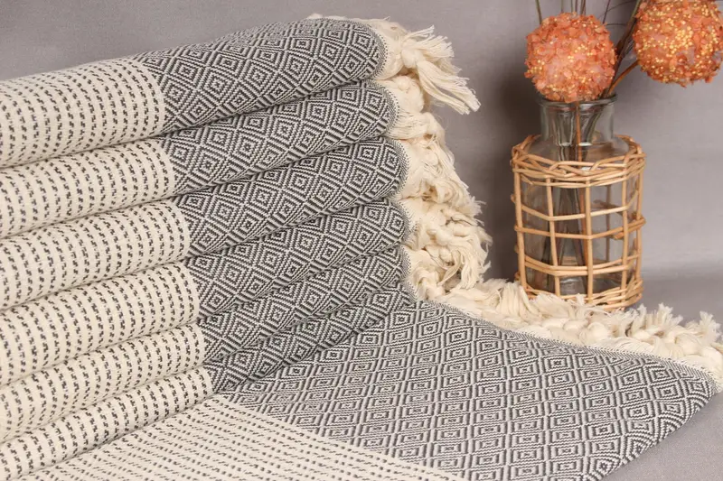 Türk havluları, dayanıklılık ve yumuşaklık sağlayan organik pamuk ipliğinden dokunmuştur. El dokuma teknikleriyle öne çıkan bu havlular, manuel üretim nedeniyle 2 inç (5 santimetre) toleransla 36x71 inç (90x180 santimetre) ölçülerindedir. Her bir havlu 300 gram ağırlığında olup çok yönlü, çok amaçlı bir kullanım olanağı sunar.