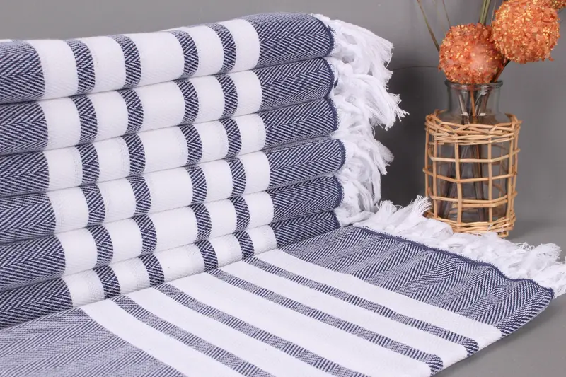 Türk pamuğu, bu titizlikle dokunmuş plaj havlusunun üstün emicilik ve rahatlık sağlamasıyla öne çıkıyor. Havlu 36x67 inç (90x170 santimetre) ölçülerinde, yaklaşık 380 gram ağırlığında ve 2 inç (5 santimetre) dokuma toleransına sahip. Ürün, talep üzerine isimlerin veya logoların işlenebileceği nakış özelleştirmesine olanak tanır. Önceden küçültülmüş havlular hemen kullanıma hazırdır ve nakliye, FedEx, DHL veya UPS gibi güvenilir taşıyıcılar aracılığıyla yönetilir. Müşteri memnuniyeti güvencesi sağlanarak iade ve değişim kabul edilmektedir.