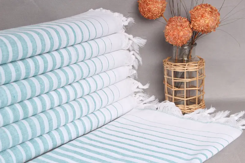 Türk plaj havlusu, hem sürdürülebilirlik hem de üstün emicilik sağlayan yüksek kaliteli organik pamuk ipliğinden dokunmuştur. 40x69 inç (100x175 santimetre) boyutlarıyla öne çıkan bu el yapımı havlunun ağırlığı 240 gramdır. El dokuması nedeniyle ölçülerde 5 cm'ye kadar farklılık olabilir.