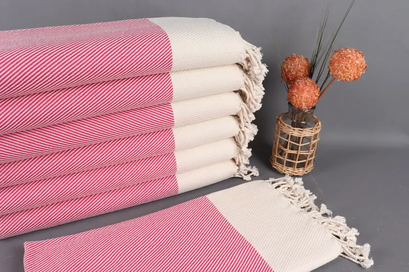 Bu plaj havluları, üstün yumuşaklık ve emicilik sağlayan organik pamuk iplikleriyle karakterize edilir. 40x71 inç (100x180 santimetre) ölçülerinde ve 2 inç (5 santimetre) toleransla her bir havlu 430 gram ağırlığındadır. El yapımı dokuma işlemi, çeşitli kullanımlara uygun, çok amaçlı, çift taraflı bir tasarımla sonuçlanır.