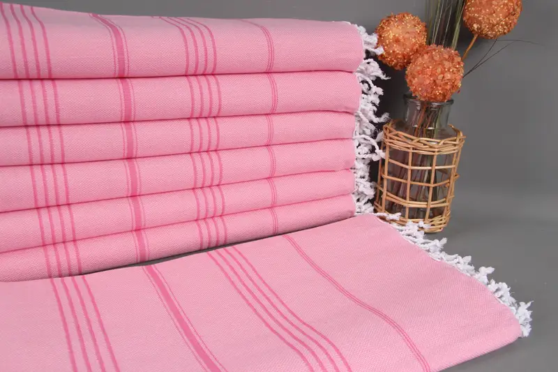 Türk plaj havlusu, üstün emicilik ve dayanıklılık sağlayan organik pamuk ipliğinden yapılmıştır. Her yıkamada yumuşaklığını koruyan bir ürün ortaya çıkaran havlunun malzeme bileşimi, kalite açısından titizlikle seçilmiştir.