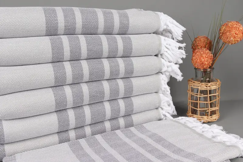 Özel Türk Plaj Havlusu Chevron Desen, Açık Gri-Koyu Gri, 36x67 İnç