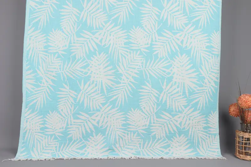 Kişiye Özel Türk Plaj Havlusu Turkuaz Çiçek Desenli, 40x63 İnç