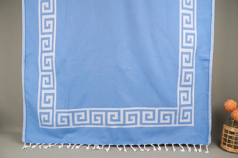 Kişiye Özel Plaj Havlusu Monogramlı Mavi Desenli, Organik Pamuk, 40x71 İnç