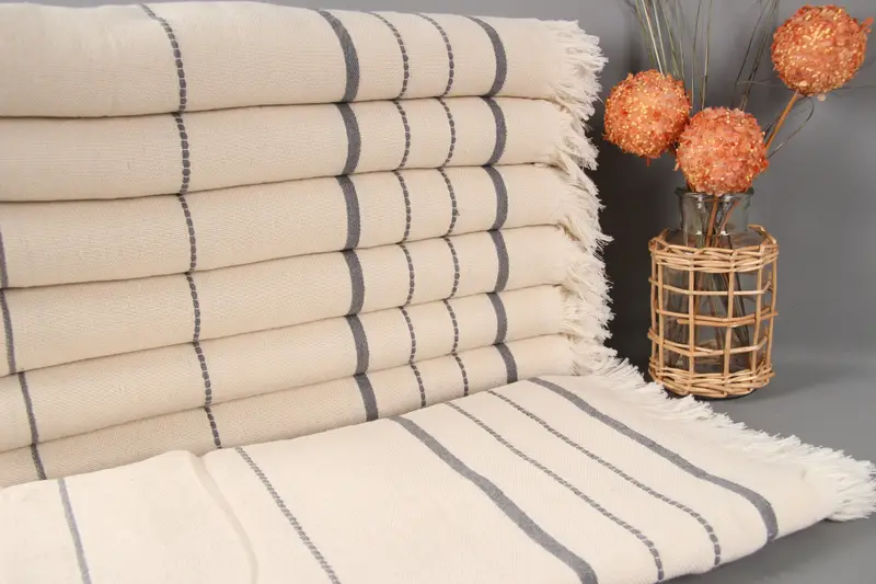 Birinci sınıf Türk havlumuz, yüksek emicilik ve dayanıklılık sağlayan organik pamuk ipliğinden yapılmıştır. Çift kullanımlı yapısıyla karakterize edilen bu plaj havlusu, birden fazla ev ihtiyacı için çok yönlü bir çözüm sunar. Dokuma toleransları 2 inç'e kadar küçük boyut farklılıklarına neden olabilir.