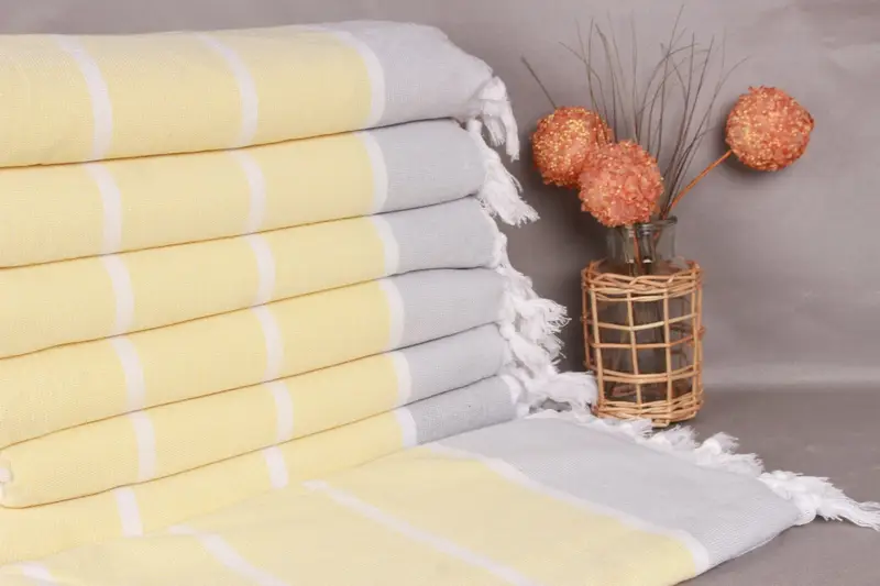 Plaj Havlusu Sarı-Gri Organik Pamuk, Kişiye Özel, 40x63 İnç