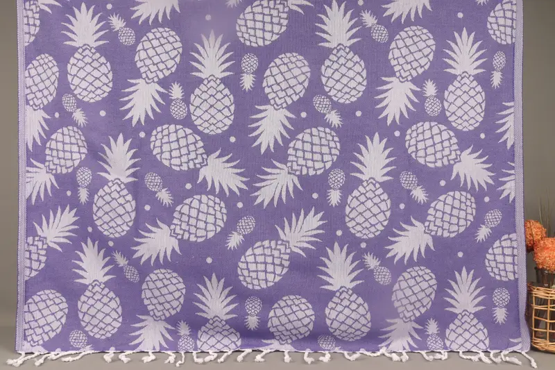Toptan Türk Plaj Havlusu Mor Ananas, Organik Pamuk, 40x71 İnç