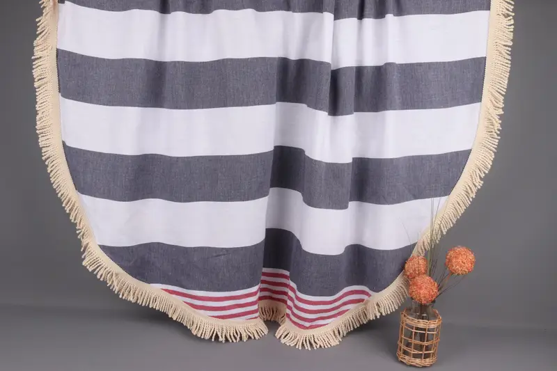 Organik pamuk ipliği, çeşitli ortamlarda çok amaçlı kullanımıyla karakterize edilen plaj havlusu için üstün emicilik ve rahatlık sağlar. 63x63 inç (160x160 cm) ölçülerinde ve 2 inç (5 cm) toleransa kadar olan el yapımı havlunun ağırlığı yaklaşık 500 gramdır. Hafif ancak dayanıklı bir ürün ortaya çıkaran her parça, anında kullanım için önceden küçültülmüştür.
