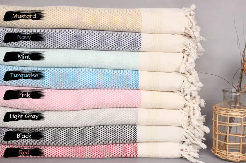 Organik pamuk ipliği bileşimi ile karakterize edilen Türk havluları, gelişmiş emicilik ve dayanıklılık sergiliyor. 67x40 inç (170x100 santimetre) ölçülerinde ve el dokuma tekniklerinden dolayı izin verilen boyut toleransı 2 inç (5 santimetre) olan bu havluların ağırlığı 360 gramdır. Her parça, müşteri tarafından belirlenen isimlerin veya logoların işlenmesine olanak tanıyan kişiselleştirilmiş kişiselleştirme seçeneklerine tabi tutulur. Sevkiyattan önce önceden küçültülmüş olan bu havlular hemen kullanıma hazırdır. Nakliye FedEx, DHL veya UPS ar...