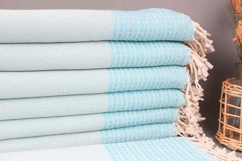 Organik pamuk ipliğinden üretilen Türk havlusu, çok çeşitli uygulamalara uygun, üstün emicilik ve nefes alabilirlik sağlar. 36x69 inç (90x175 santimetre) boyutlarıyla öne çıkan ağırlığı 420 gram olup, 2 inç’e (5 santimetre) varan toleranslarla dokuma tekniklerinde esneklik sağlıyor. El dokuması sayesinde önceden küçültme durumu elde edilerek müşterilere çok amaçlı bir aksesuar sunulmaktadır. Müşteriler havlularını nakışla kişiselleştirme seçeneğine sahip olup kişiselleştirmeyi geliştiriyorlar. Nakliye, FedEx, DHL veya UPS gibi küresel taşıyıcıl...