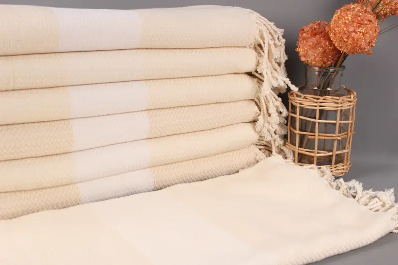 Organik pamuk ipliği ile karakterize edilen havlu, olağanüstü nefes alabilirlik ve dayanıklılık sağlayarak her yıkama işleminde yumuşaklığını koruyan bir ürün ortaya çıkarır. 38x75 inç (95x190 santimetre) ölçülerinde ve 2 inç'e (5 santimetre) kadar toleransla her bir havlu 380 gram ağırlığındadır. El dokuma teknikleri boyutlarda esneklik sağlayarak çeşitli kullanımlar için hassas ancak uyarlanabilir bir uyum sağlar.