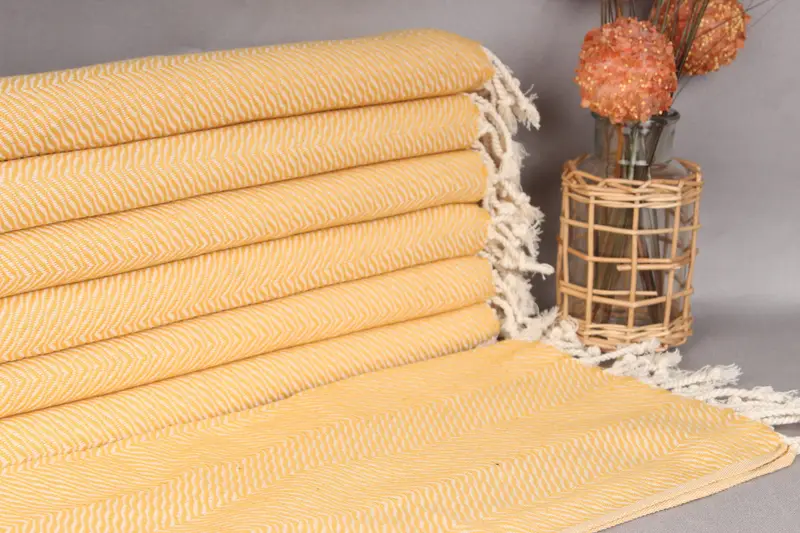 Organik Pamuk İpliği, bu Türk havlularının temel malzemesi olarak yüksek emicilik ve dayanıklılık sağlar. 100 gramlık bir havlu ağırlığıyla sonuçlanan boyutlar tam olarak 20x40 inçtir, yani 50x100 santimetreye karşılık gelir ve 2 inç'e (5 santimetre) kadar dokuma toleransı vardır.
