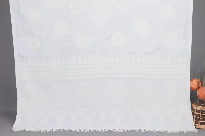 Organik pamuk ipliklerinden dokunan bu Türk plaj havlusu, dayanıklılık ve sürdürülebilirlik sağlar. Hafif ancak son derece emici bir kumaşla sonuçlanan elyaf bileşimi, çeşitli ev kullanımlarında çok yönlülük sağlar. 36x73 inç (90x185 santimetre) ölçülerinde ve 300 gram ağırlığındaki havlu, el dokuma toleranslarından dolayı 2 inç (5 santimetre) kadar hafif bir değişiklik gösteriyor.