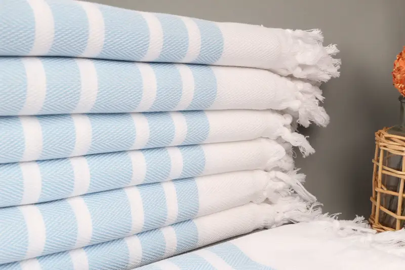 Organik pamuk ipliği bu Türk havlusunda yüksek dayanıklılık ve nefes alabilirlik sağlar. Ortaya çıkan, mutfak havlusu, banyo havlusu veya plaj havlusu gibi birden fazla kullanım için ideal olan hafif, düz dokuma bir kumaştır. 40x71 inç (100x180 cm) boyutunda ve 380 gram ağırlığında, 5 cm'ye kadar el dokuma toleranslarıyla karakterize edilmiştir.
