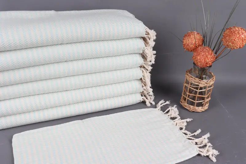 Türk el havlumuz, olağanüstü emicilik ve dayanıklılık sağlayan organik pamuk ipliğinden üretilmiştir. Hafif ancak sağlam bir kumaşla sonuçlanan bu kumaş, tekrar tekrar yıkanarak bütünlüğünü korur. Düz dokuma yapısıyla karakterize edilen bu ürün, nemi etkili bir şekilde emer ve hızla kurur.