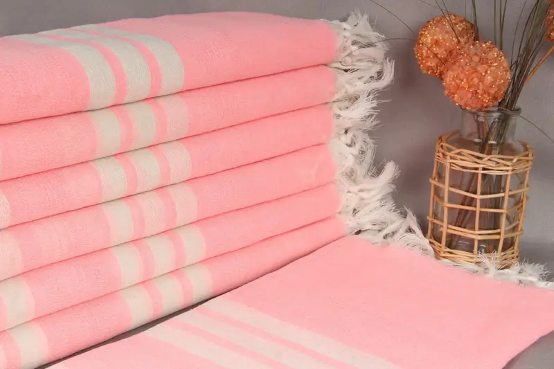 Organik pamuk ipliği Plaj Hediye Havlusunun temelini oluşturarak yüksek emicilik ve dayanıklılık sağlar. 40x67 inç (100x170 cm) boyutuyla karakterize edilen her el dokuması havlu, 2 inç'e (5 cm) kadar el dokuma toleransıyla yaklaşık 200 gram ağırlığındadır.