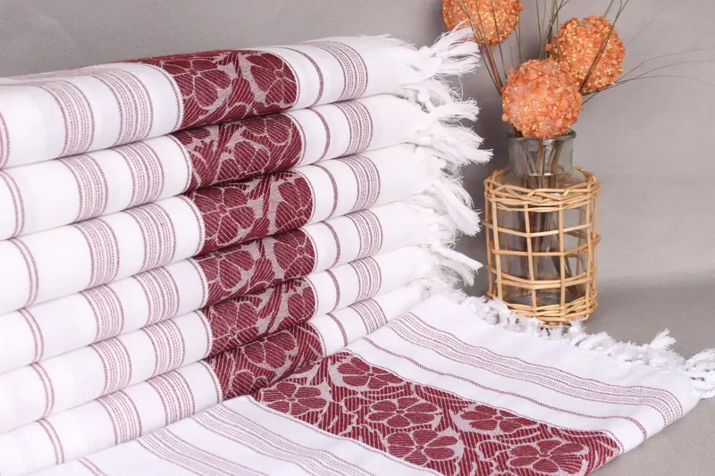 Bu el yapımı Türk plaj havlularının malzemesi organik pamuk ipliğinden oluşmakta olup, yüksek emicilik ve dayanıklılık sağlamaktadır. 40x71 inç (100x180 santimetre) ölçülerinde ve 2 inç (5 cm) toleransla her bir havlunun ağırlığı 300 gramdır. El dokuması boyutlarda hafif bir farklılığa neden olur.