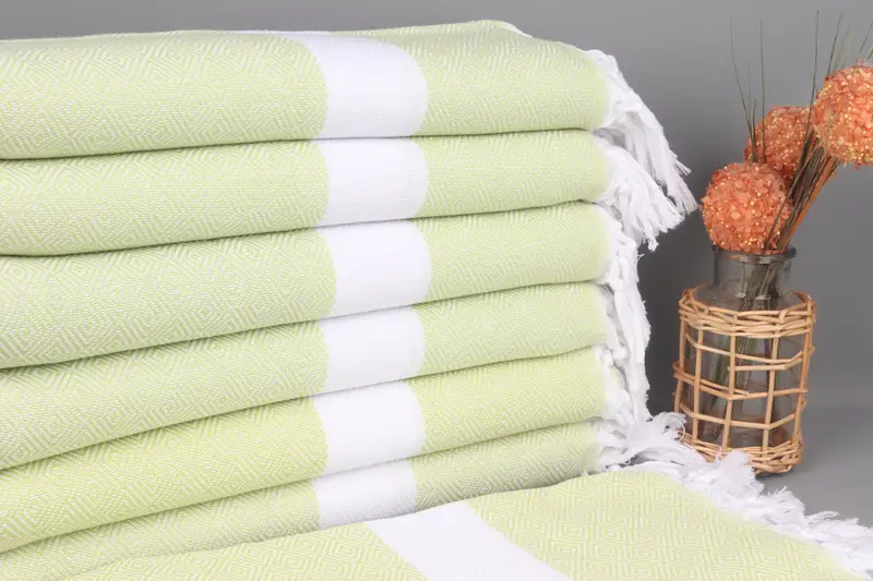 Kişiye Özel Plaj Havlusu Fıstık Yeşili Elmas, Organik Pamuk, 40x71 İnç