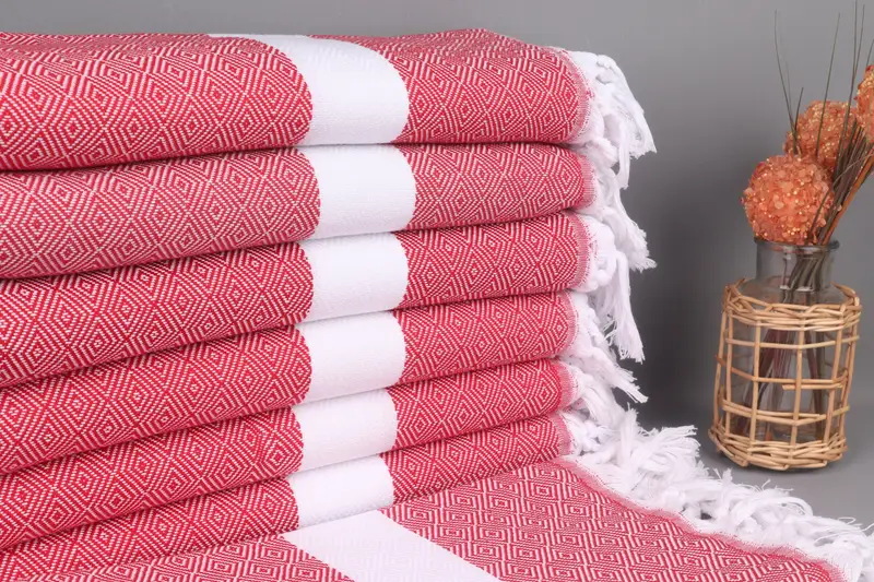 Özel Havlu Monogramlı Organik Pamuk Kırmızı Elmas, 40x71 İnç