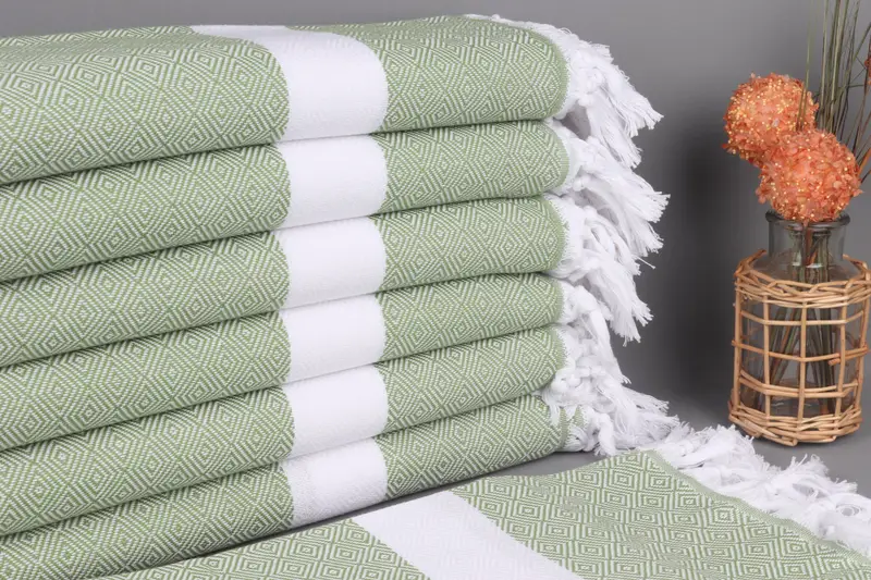 Türk Plaj Havlusu Kişiye Özel Organik Pamuk Açık Haki Yeşil Elmas, 40x71 İnç