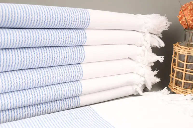 Kişiye Özel Türk Pamuk Havlu Çizgili Saks Mavi, 40x71 İnç