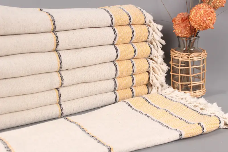 Türk Hamam Havlusu Hardal Çizgili Keten, 36x71 İnç