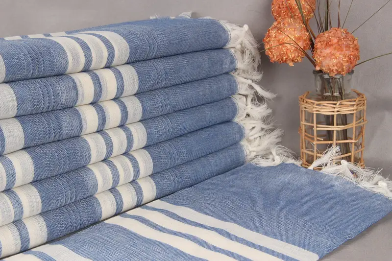 Türk Havlusu Kişiye Özel Plaj Lacivert Çizgili, 40x67 İnç