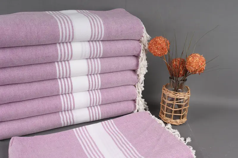 Türk Hamam Havlusu Organik Pamuk Bej Çizgili, 38x75 İnç