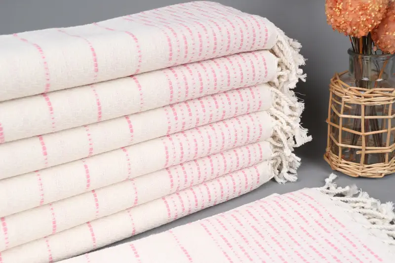 Kişiye Özel Pembe Çizgili Havlu, Organik Pamuk, 38x71 İnç