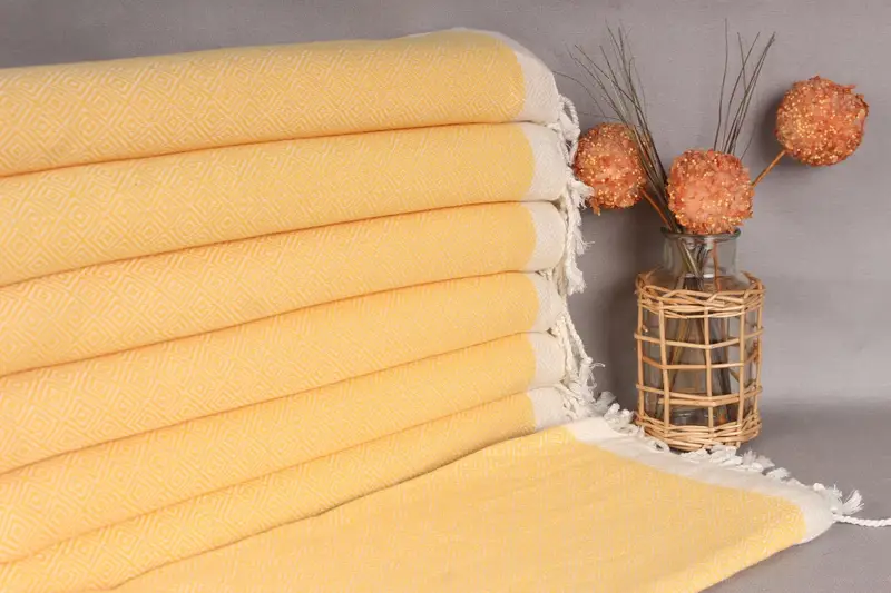 Yeni eve taşınma hediyesi sarı pamuklu havlu, 38x71 inç