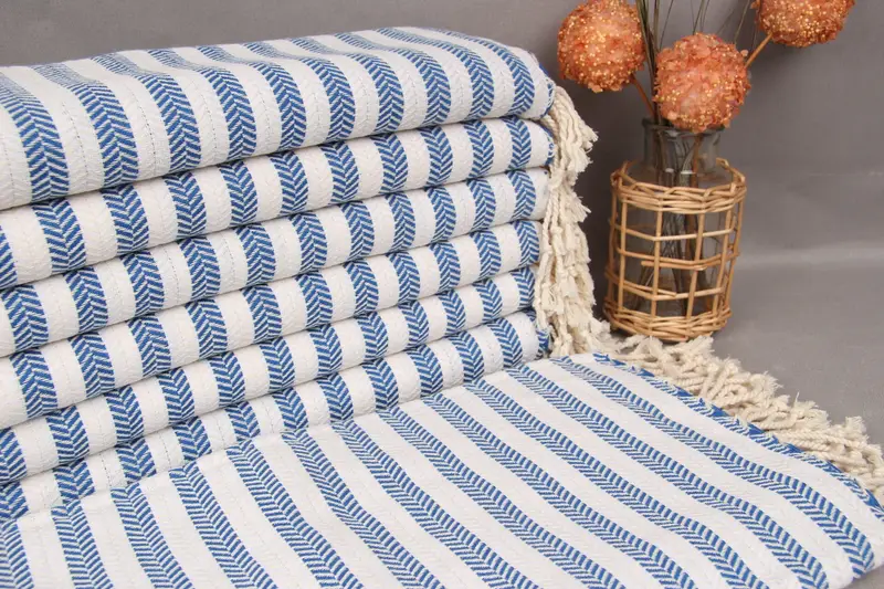 Kişiye Özel Türk Pamuğu Chevron Havlu Mavi, 40x71 İnç