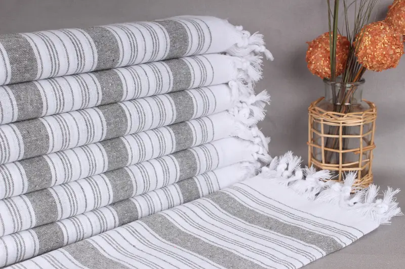 Kişiye Özel Haki Yeşil Çizgili Türk Havlusu, 32x67 İnç