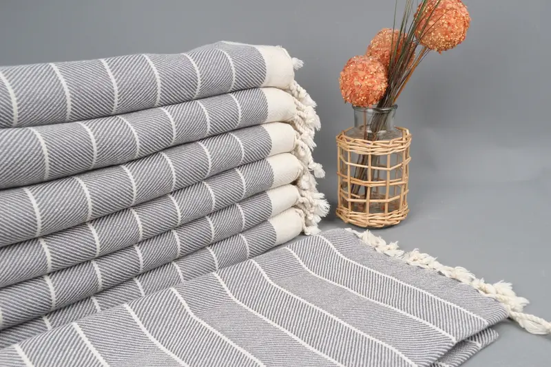 Kişiye Özel Koyu Gri Balıksırtı Havlu, Organik Pamuk, 40x71 İnç