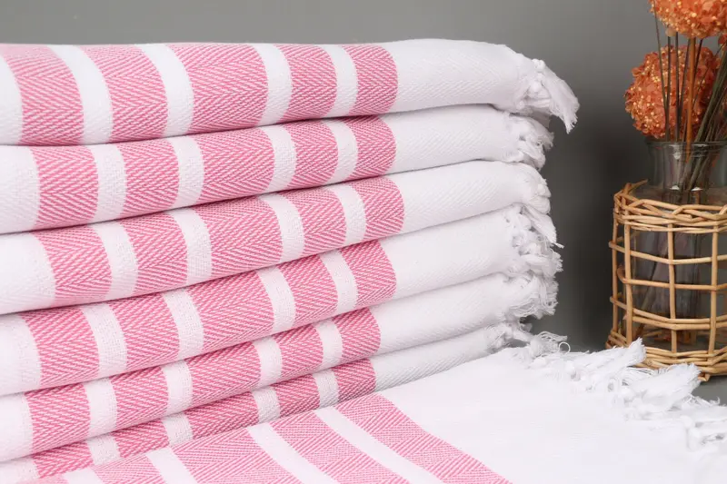 Özel Türk Havlusu Fuşya Chevron, Organik Pamuk, 40x71 İnç