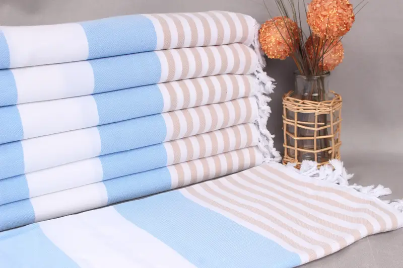 Kişiye Özel Türk Havlusu Bebek Mavisi-Bej Çizgili, Organik Pamuk, 40x71 İnç