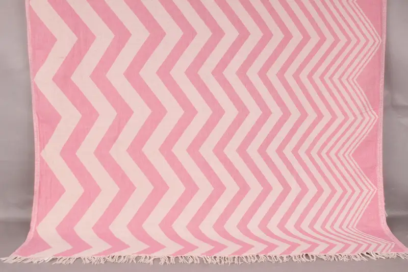 Nedime Hediye Havlusu Organik Pamuk Pembe Zikzak, 40x71 İnç